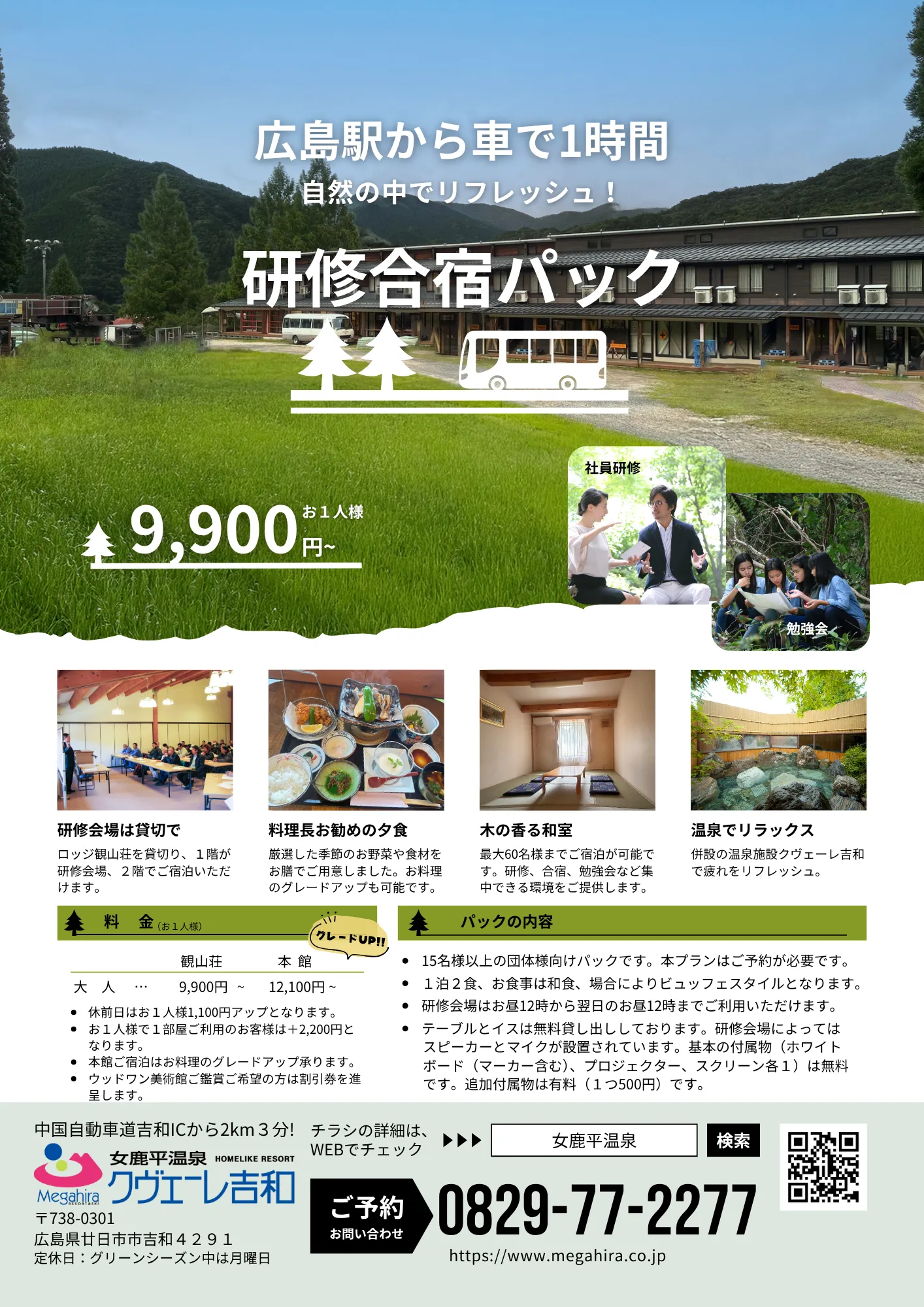 美しい自然に囲まれたロッジでの宿泊合宿&研修。