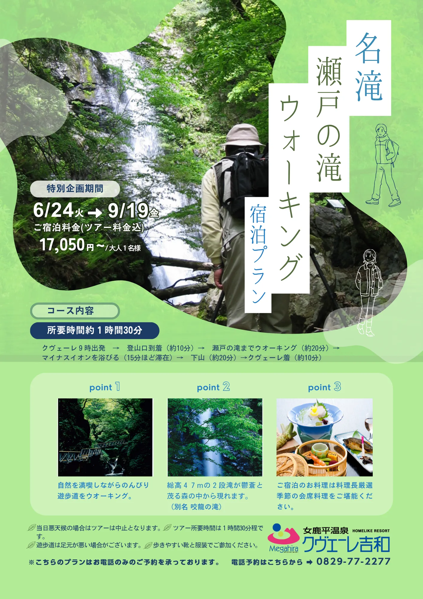 期間限定 夏(6月~9月頃)マイナスイオンの中をゆっくり散策。